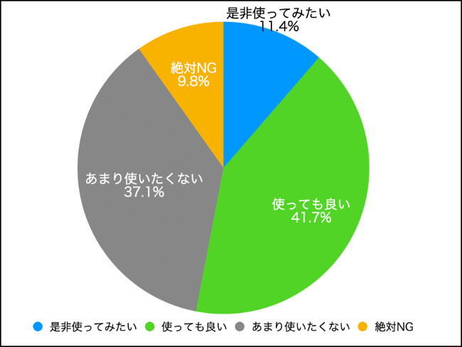 回答の選択肢を増やしたことも要因かもしれませんが「使っても良い」「是非使ってみたい」と肯定的な意見の人が約半数になりました。