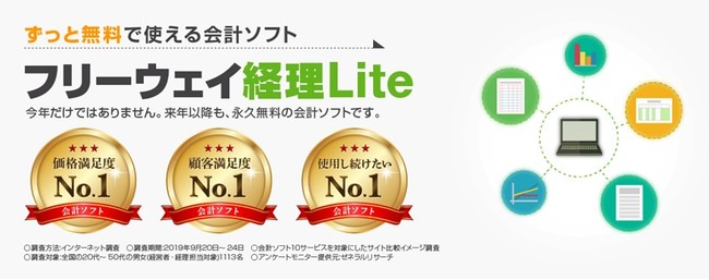 フリーウェイ経理Liteは永久に無料でご利用いただける会計ソフトです。