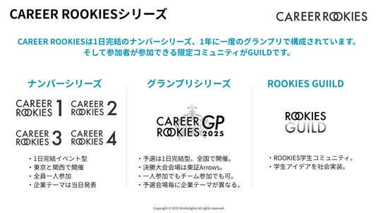 株式会社Strobolights(本社:東京都町田市、代表取締役社長:羽田啓一郎)は、学年不問の大学生ビジネスコンテスト「CAREER ROOKIES(キャリアルーキーズ)」に参加した大学生を中心とした実践型コミュニティ、「ROOKIES GUILD(ルーキーズ ギルド)」を立ち上げました。