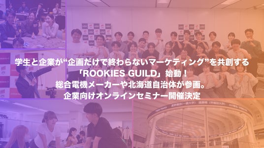ROOKIES GUILDは、学生と企業がチームとなり、「企画提案で終わらないマーケティング」を実際のプロジェクトとして共創し、社会実装する場です。すでに大手総合電機メーカーおよび北海道の自治体が参画しており、学生と共にプロジェクトを推進中です。