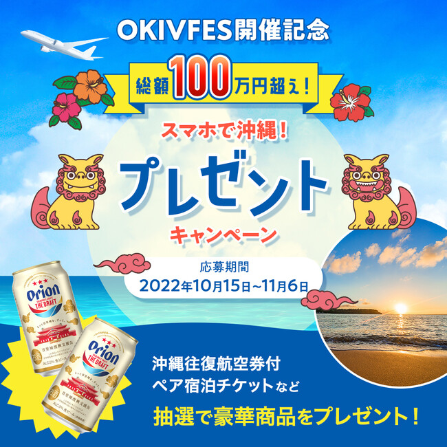 沖縄から世界へ!魅力あるエンターテインメントコンテンツを企画・開発する株式会社あしびかんぱにー(代表取締役:片桐 芳彦 所在地:沖縄県那覇市 以下あしびかんぱにー)は、沖縄初のバーチャルフェス『OKINAWA JAPAN VIRTUAL FES』(略称:OKIVFES)の開催を記念して、沖縄旅行や県産品がスマホで当たる!プレゼントキャンペーンを実施することをお知らせいたします。