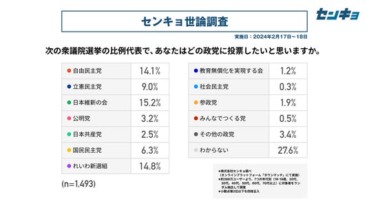 次期衆院選の比例投票先(単純集計)