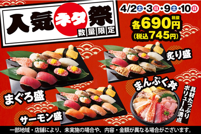 持ち帰り寿し店の「小僧寿し」「茶月」を運営する株式会社小僧寿し(本社:東京都中央区 代表取締役社長 良本 宣之)は、持ち帰り寿し店「小僧寿し」にて、4月2日(土)~3日(日)・9日(土)~10日(日)の期間限定で、「春の人気ネタ祭」を開催致します。