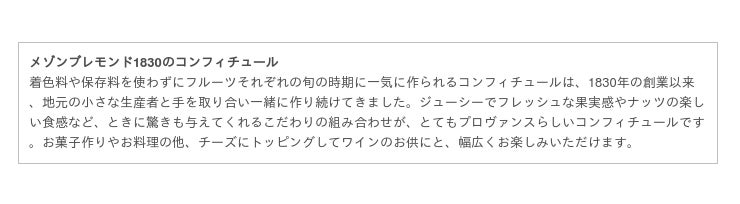 【特徴】メゾンブレモンド1830のコンフィチュールを代表するラインナップです。毎日のトーストやヨーグルトが、このセットひとつで豊かに彩られます。