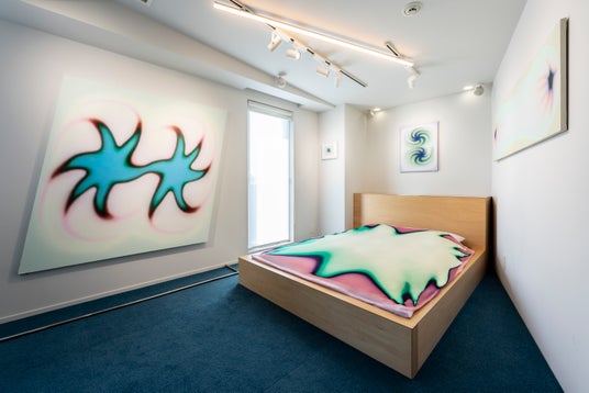 中村は、ディスプレイが自ら発光することによって初めて平面上で視ることが可能となる造形と色彩を、現実空間に立ち上げることによって、デジタルであると同時にフィジカルでもある表現手法を探求しているのです。