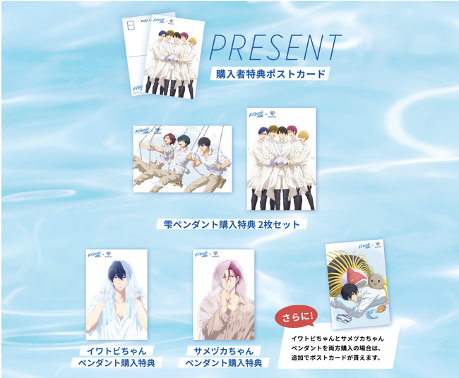 国内最大級の宝石専門情報メディア「KARATZ Gem Magazine」(カラッツジェムマガジン:https://karatz.jp/)を運営する株式会社カラッツ(本社:東京都台東区)は、今年で放送開始から10年を迎える人気アニメ「Free!」シリーズとコラボし、10周年記念オリジナルジュエリーを制作いたしました。アイテムラインナップは、登場人物のイメージカラーの宝石を埋め込んだロゴリングや、イワトビちゃん&サメヅカちゃんのペンダントなど、4種類、全12アイテムです。購入者特典として多様なパターンのポストカードがついてきます。
