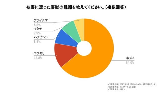 今回はどのような害獣の被害が多いか、主な被害内容や害獣への対処法についての調査結果を報告します。