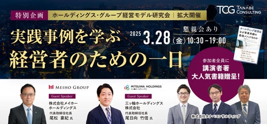2025年3月28日(金)に開催された株式会社タナベコンサルティング(本社:東京都千代田区、代表取締役社長:若松 孝彦、以下「タナベコンサルティング」)主催のホールディングス・グループ経営モデル研究会セミナーに、三ッ輪ホールディングス株式会社(本社:東京都新宿区、以下「当社」)代表取締役社長の尾日向 竹信が登壇いたしました。「時代の変化とともに成長・進化するホールディング経営」をテーマに、グループの事業ポートフォリオ拡充の変遷やホールディングス化による成果、新たに生まれた課題への対応策などについて、事例をもとにお話させていただきました。
