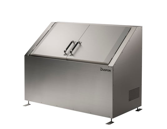 「ダスポンDSシリーズ」は、容量が約580Lからのサイズ展開となっており、ステンレス製と黒ZAM(R)製のバリエーションがあります。多くの方々の利用に耐えうる収納力を備えているので、設置場所は地区や集合住宅、福祉施設など多岐にわたります。また、トルクヒンジを装備しているので、一定の角度で扉を固定。扉を全開にしたり、扉を片手で抑えたりする手間がなく、女性やシニア世代も安全に使用できます。