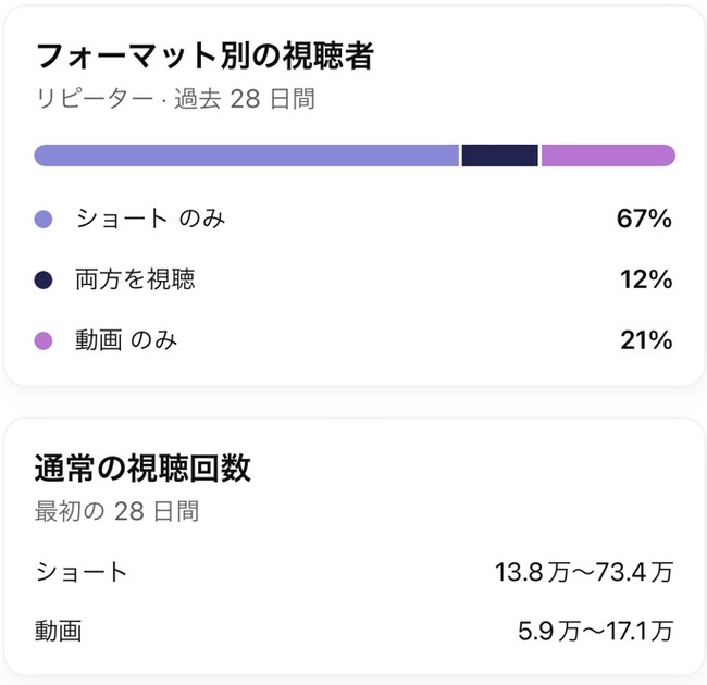そして、実際にあっという間に、視聴者の割合がショートメインのチャンネルになってしまい、同時に、メインの長尺動画の伸びの停滞を感じ始めました。