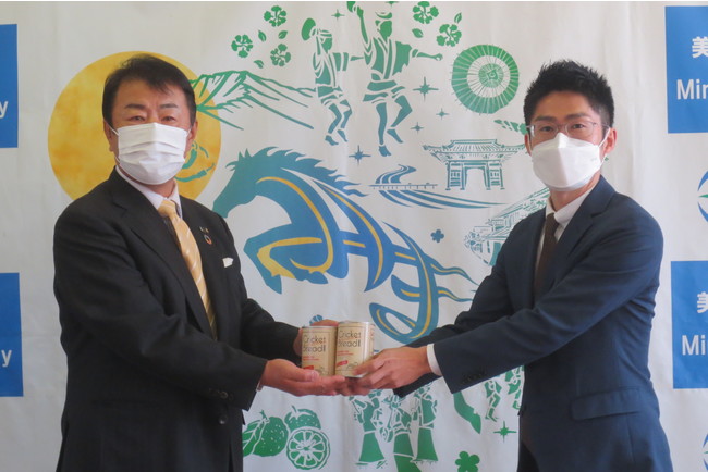 また3月10日(木)に開催した締結式では、藤田 元治様(美馬市長)を美馬ファームにお招きし、協定の締結およびコオロギを使用した缶入りパン300個の贈呈式、発災時を想定した自社商品「C. TRIA カレー」の炊き出し演習を行いました。この缶入りパンは美馬ファームおよび美馬研究所に配備し、災害時の非常食として使用します。