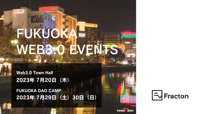 Fracton Ventures株式会社(本社:東京都品川区、代表者:鈴木雄大、亀井聡彦、赤澤直樹 以下 当社)は、福岡市からの委託を受け、福岡市内におけるWeb3.0の機運醸成及び福岡市からのプレイヤーの創出を目的として、 Web3.0領域の最前線で活動している方々から生の声を聞く「Web3.0 Town Hall(2023年7月20日)」と、DAOを基礎から学び、体験することでWeb3.0への入口を開く「FUKUOKA DAO CAMP(2023年7月29、30日)」を、福岡市内の「エンジニアカフェ」及びスタートアップ支援施設「Fukuoka Growth Next」で開催することをお知らせします。