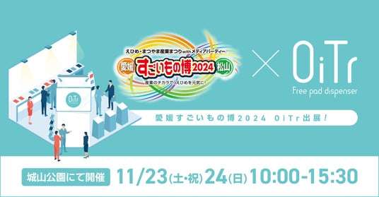 商業施設や学校、公共施設、オフィスの個室トイレに生理用ナプキンを常備し、無料で提供するサービス「OiTr(オイテル)」を展開するオイテル株式会社(本社:東京都新宿区、代表取締役:崎山 真)は、愛媛県松山市の城山公園(堀之内)で開催される「えひめ・まつやま産業まつり すごいもの博2024」に出展いたします。
