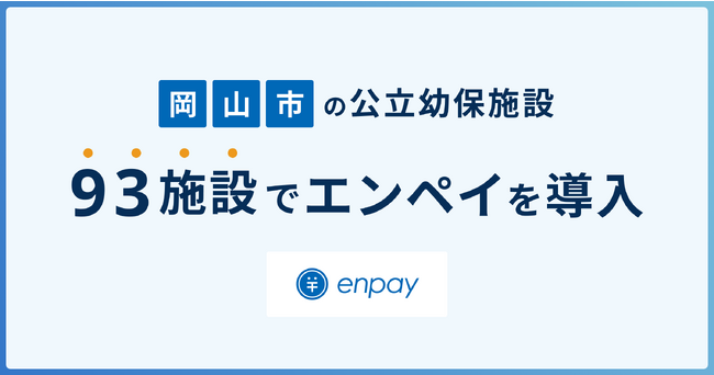 集金業務のキャッシュレス化・DX化を実現するFintech×SaaSプラットフォーム『enpay(エンペイ)』を提供する株式会社エンペイ(本社:東京都港区、代表取締役:森脇 潤一、以下エンペイ)は、政令指定都市では初となる岡山市の公立幼稚園・認定こども園・保育園(93施設)に「エンペイ」が導入されたことを発表いたします。
