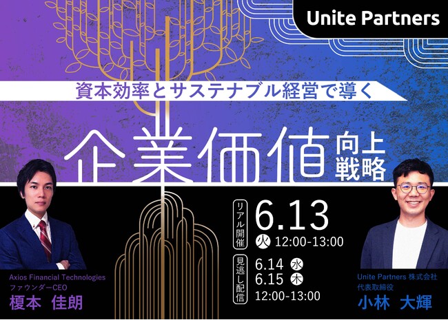 企業の変革パートナーを目指すブティック型コンサルティングファームのUnite Partners株式会社(本社:東京都、代表取締役:小林大輝)は、2023年6月13日(水)に、「企業価値向上戦略 ~資本効率とサステナブル経営で導く~ 」と題して大企業の経営幹部の方向けのセミナーを開催します。