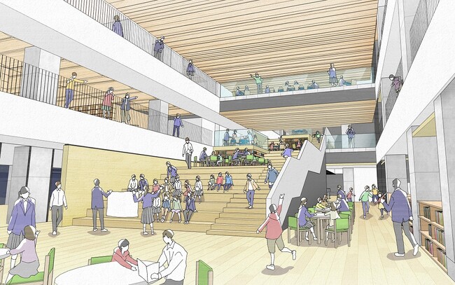 従来の教室に加えて共用場所を一体的に使うことで、児童生徒の自主的で多様な学びをサポートするスペースです。地域や異学年との出会いと学び、活動の場を生み出します。