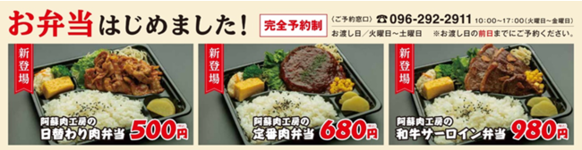 【阿蘇の国産肉が手軽に楽しめるお弁当が3種類のラインナップで新登場!!】