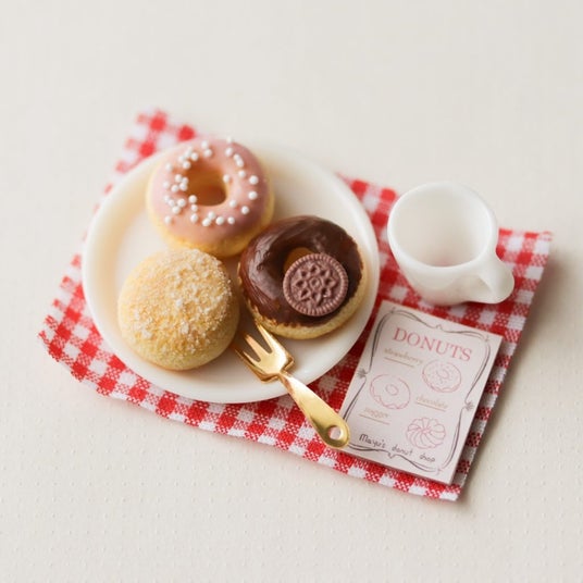 樹脂粘土で 3 種類のミニチュアドーナツをつくります。親子で楽しくつくりましょう。