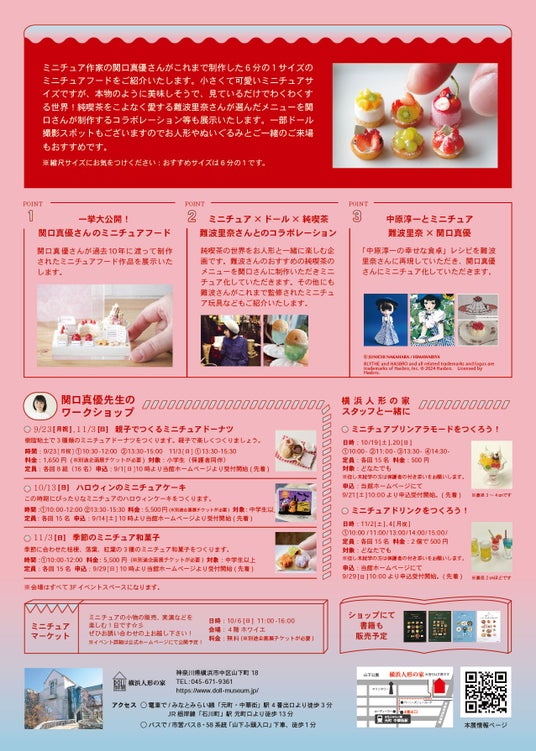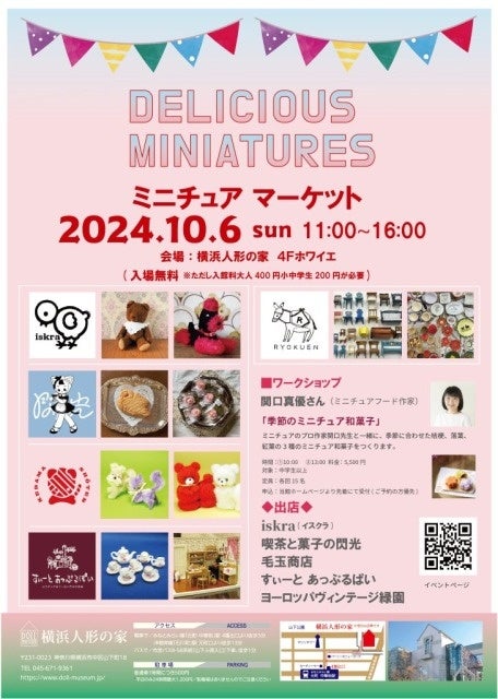 大人気の出店者さんたちが横浜人形の家に集結!展覧会とお買い物、ワークショップまで楽しめる1日となっております。ミニチュア専門のお店や美味しくて素敵なデザインの焼き菓子販売などもございます。ぜひ皆様お誘い合わせの上、ご来場お待ちしております。