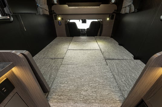 家のリビングのように足を伸ばしてくつろいだり、テーブルを囲んで食事を楽しんだり、夜はフルフラットベッドに展開してゆっくり眠ることもできます。