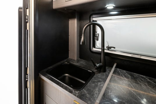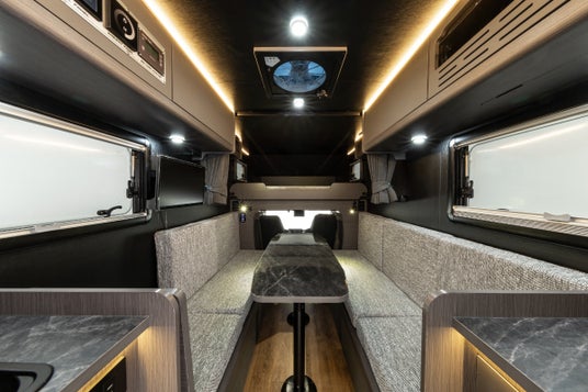 KATANAminiは、コンパクトキャブコンでは珍しいコの字型ソファレイアウトを採用。