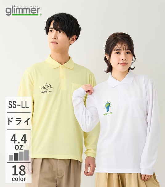 商品名 4.4オンスドライ長袖ポロシャツ(ポケット付)335-ALP 【グリマー】