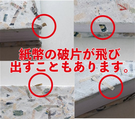 ※1紙幣屑が、外れ落ちたり角から飛び出たりします。
