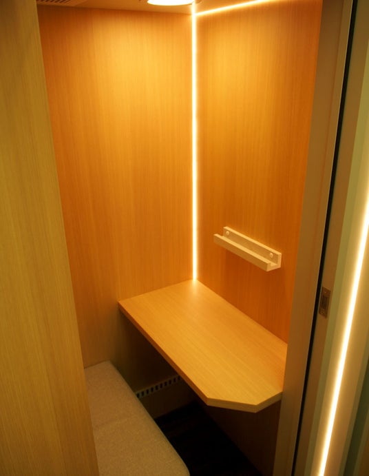 木目調の壁面と、高性能ファンによる積極的な外気循環により、コンパクトながら居心地のよい空間を提供します。