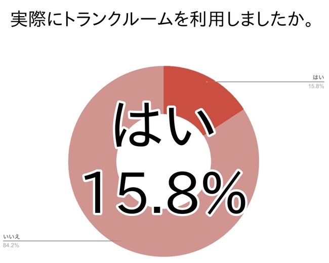 トランクルーム利用を検討した方のうち実際に利用したと答えた方は15.8%でした。