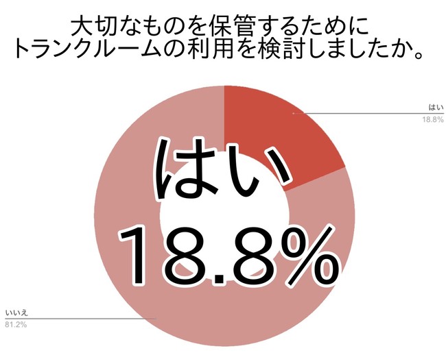 実家じまいにおいて大切なものを保管するためにトランクルームの利用を検討した方は18.8%でした。
