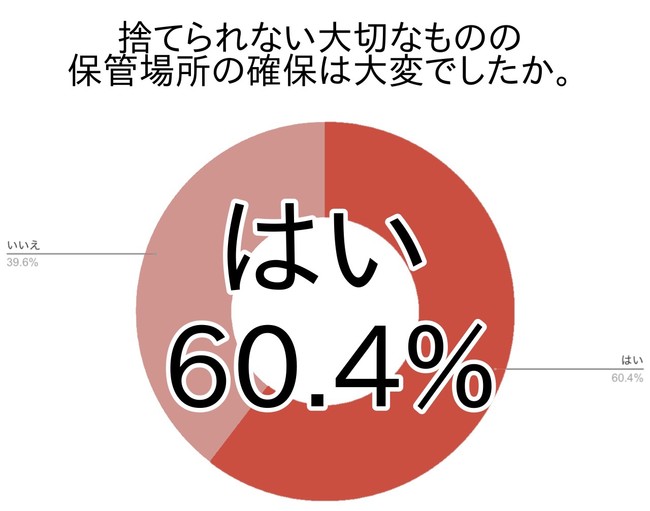 約6割(60.4%)の方が捨てられない大切なものの保管場所の確保が大変だったと答えました。