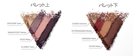 下段は仕込み用のベース2 色と仕上げ用のトップシマー2 色のアイシャドウパレット。