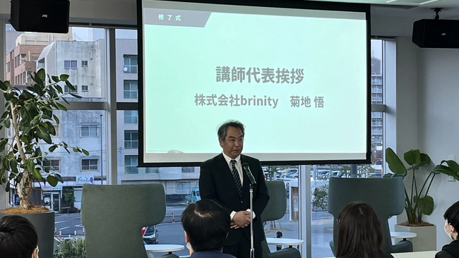 当社の菊地取締役は、「現在、IT業界のプロジェクトにおいて、動画やYoutubeといったメディアが必要不可欠な時代になっています。DX分野への扉を開く修了生一人ひとりの未来への期待と共に、皆様のスキルアップやお仕事の幅が広がっていくことを願っています」と祝辞を述べました。