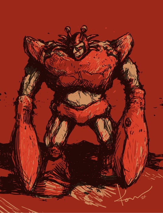 横山宏氏のスケッチをベースに、ハサミや胸囲等を大きくすることで、力強く迫力満点にアレンジ!