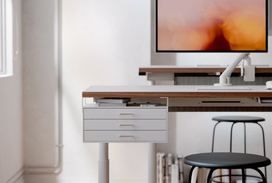 ミニマルスタイルは足元の干渉を最小限に3段分の収納力を獲得。フローティングスタイルはDrawerの上部にも収納を可能にし、ラップトップやスマートフォンなどの充電スペースとしても活用できます。デスク幅や他モジュールとのバランスを考えながら、ベストなセットアップを選択できます。