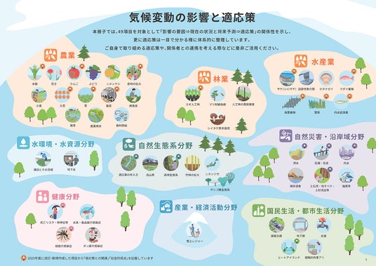 複数分野を横断して、影響要因から将来予測、適応策までを体系的に整理した公開資料としては、国内でも希少な取組です。