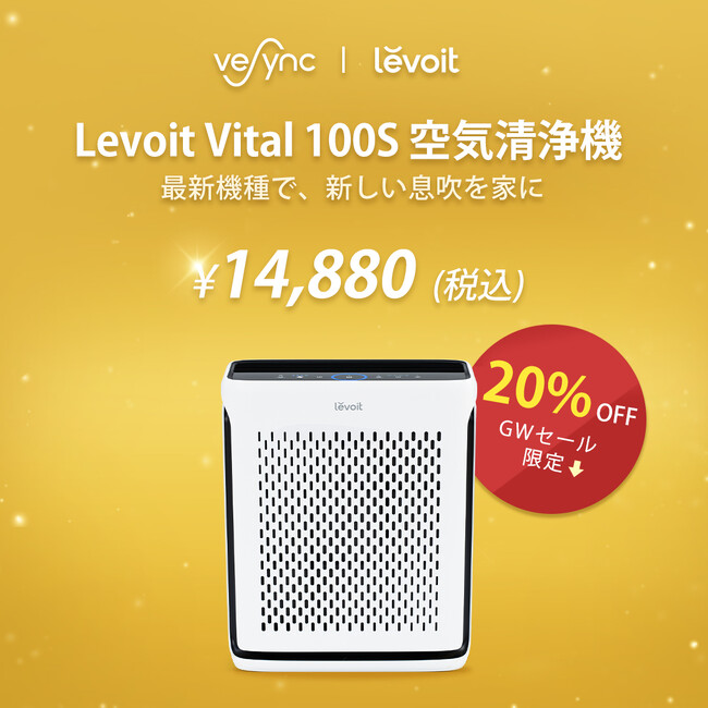 アメリカ発の小型家電メーカーのVeSync(ウィーシンク) Co., Ltd(本社:アメリカ、カリフォルニア州)は、 2023年4月20日(木)から、GWセールをVeSync公式ストアとAmazon公式店舗にて開催いたします。 Levoit空気清浄機、COSORIノンフライヤー等のVeSync家電製品で、より心地よい暮らしを提供したいと思い ます。 間もなく始まるゴールデンウィークの連休、是非快適なご自宅生活をお過ごしください。