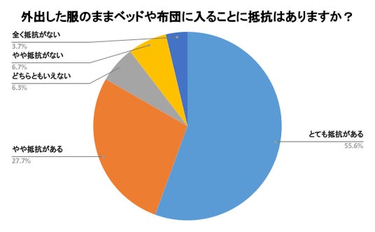 - 外出した服のままベッドに入る事にとても抵抗ある方は全体の55.6%