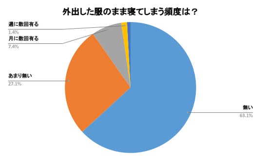 - 外出した服のまま寝てしまう頻度で一番多かったのは「ない」の63.1%