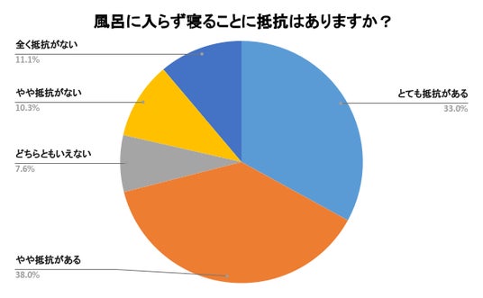 - お風呂に入らず寝る事にとても抵抗が有る人は全体の33%