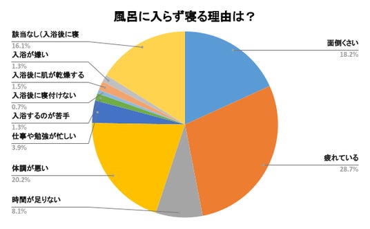 - お風呂に入らず寝る理由で多いのは「疲れている」全体の28.7%