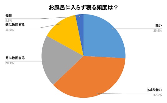 全体の72.9%がお風呂に入らず寝ることが有ると答えました
