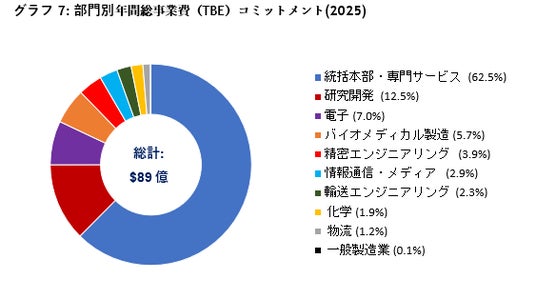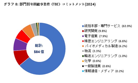 年間総事業費(TBE)コミットメントの大部分は、統括本部、専門サービス、研究開発部門によるものでした。世界中の企業は、引き続きシンガポールに海外戦略を担う統括拠点を構え、海外市場へのグローバル展開を推進しています。