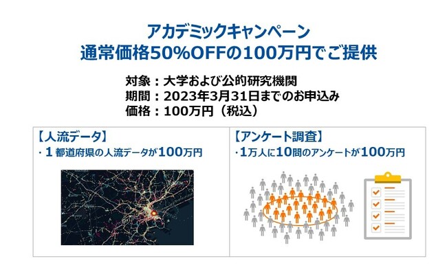 大学・研究機関向けに、人流データおよびアンケート調査のアカデミックキャンペーンを下記の通り開始いたします。