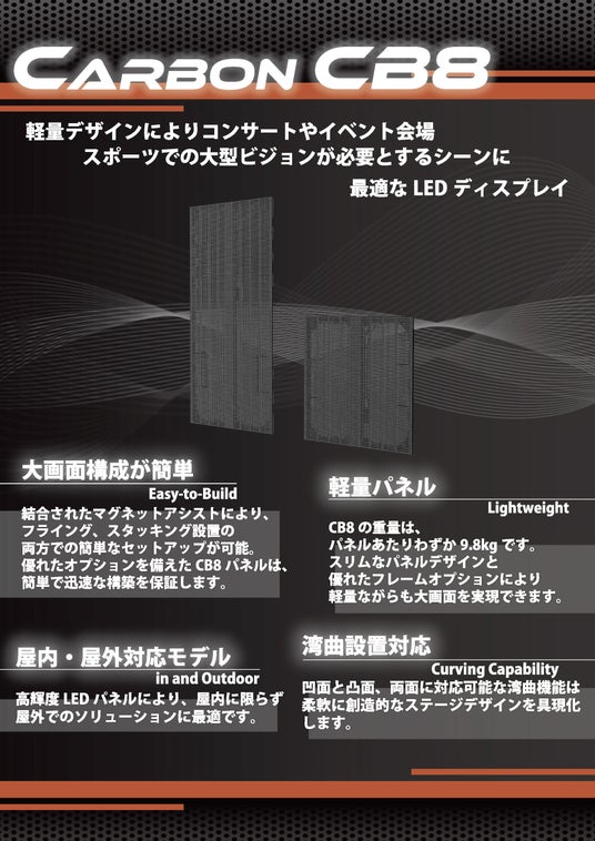 また、軽量でスリムなパネルデザインにより、柔軟な配置が可能であり、音楽・エンタメ業界など屋内外を問わずさまざまなイベントシーンに対応可能です。