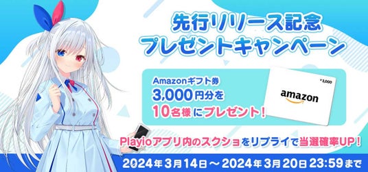 先行リリースに伴い、「Playio」公式X(旧Twitter)でフォロー&リポストして頂いた方の中から抽選でAmazonギフト券3,000円を10名様にプレゼント致します。