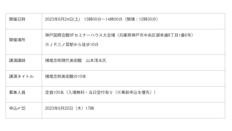「せとうち美術館ネットワーク」(※)では、瀬戸内地域を中心とした文化芸術面の魅力の発信を目的に講演会(せとうちアートセミナー)を、2023年6月24日(土)神戸国際会館にて開催します。