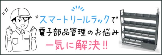 スマートリールラックは、電子部品収納ラックをデジタル化し、ラックに個々の電子部品位置情報を持たせることで、従来のリール管理の作業性を大幅に向上させる電子部品リールラックシステムです。