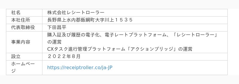 株式会社レシートローラーは、テクノロジーを活用し、消費者と企業をつなぐスマートな購買体験を提供する企業です。電子レシートプラットフォームを通じて、デジタル化と環境負荷の軽減を推進し、キャッシュレス社会の発展に貢献しています。