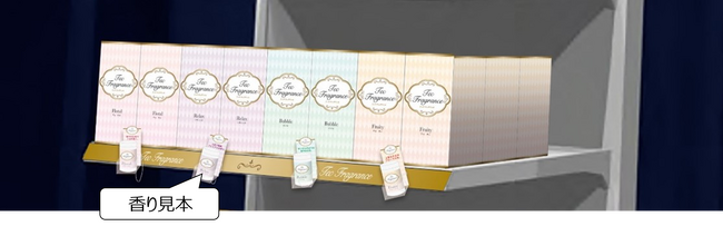 また現状の香り見本は、製品の香りを基材に付した容器が設置されている形が一般的であり、視覚と連動した店頭訴求等は行われていません。さらに消費者が手にとって利用するタイプが主流であるため、消費者の接触、取り扱いに起因する破損容器の交換や、メーカーごとの香り見本の管理など、小売店の手間が生じています。